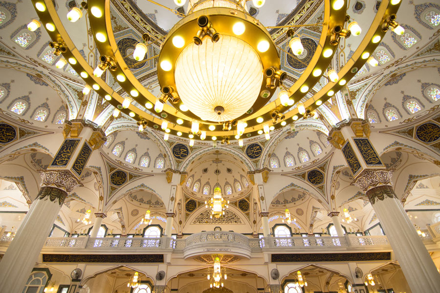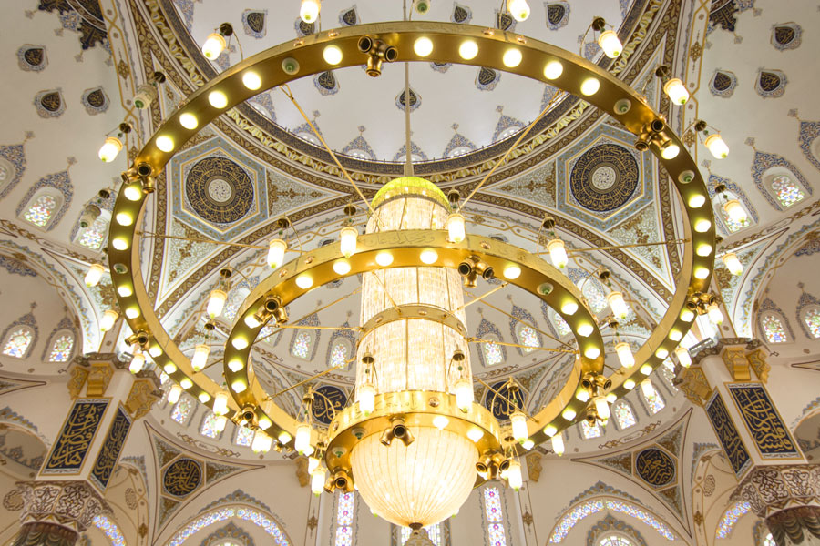 Chandeliers of Mevlana Mosque in Beylikdüzü, Istanbul