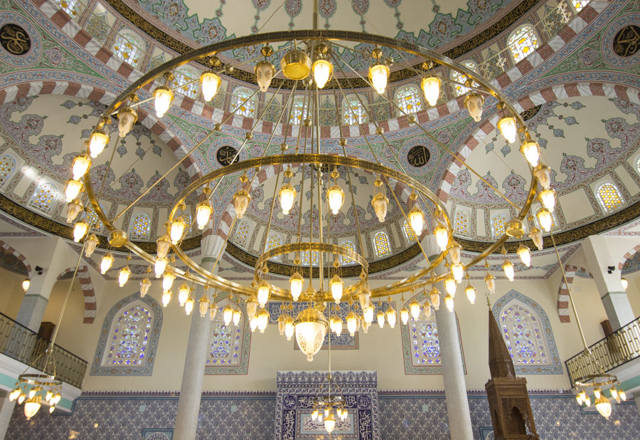 Chandeliers of Mevlana Mosque in Beylikdüzü, Istanbul